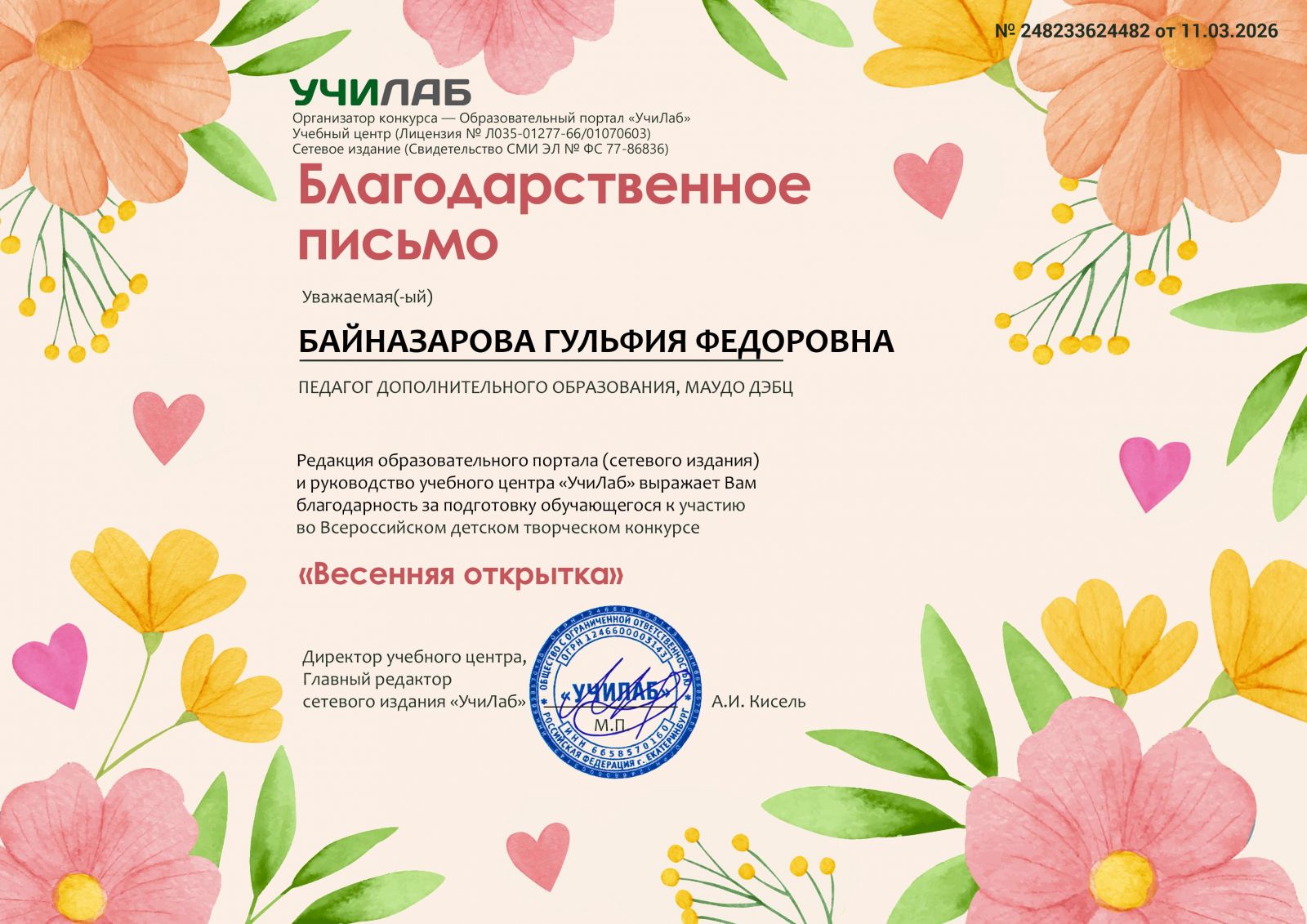 - 2 степени - Ермолаева Анастасия Александровна;