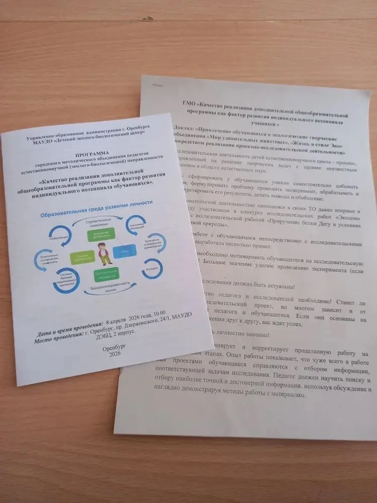 28 января 2026 года состоялось  заседание городского методического объединения педагогов естественнонаучной направленности Детского эколого-биологического центра совместно с отделом «Содружество» ЦДТ г. Оренбурга. Темой методического объединения  стало развитие  профессиональных  компетенций в рамках проектирования системы непрерывного образования педагога дополнительного образования: значимость, возможности, алгоритмы успеха в учреждении дополнительного образования посредством естественнонаучной деятельности.